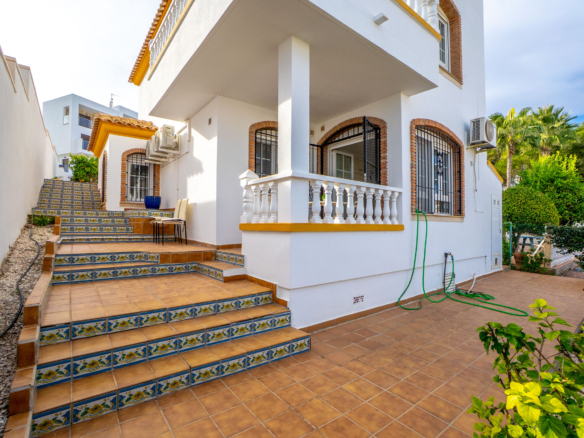 The villa is south-facing and sits on a 300 m² plot, surrounded by an authentic and inviting Spanish atmosphere.