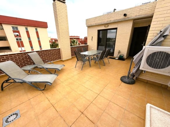 This beautiful corner duplex penthouse is located in one of the most desirable residential areas of Cabo Roig, Orihuela Costa, close to shops, restaurants, golf courses and the beaches of the Costa Blanca. The property is ideal as a permanent home, holiday property or rental investment thanks to its excellent location and generous outdoor space.
