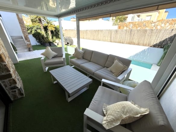 Discover this beautifully presented single-level detached villa, built in 2017 and located in the highly sought-after area of Lomas de Cabo Roig. Ideally positioned within walking distance to restaurants, bars, supermarkets, and shops, and just a five-minute drive to the beaches of Cabo Roig and Campoamor, this property offers the perfect balance of comfort, convenience, and Mediterranean lifestyle.
