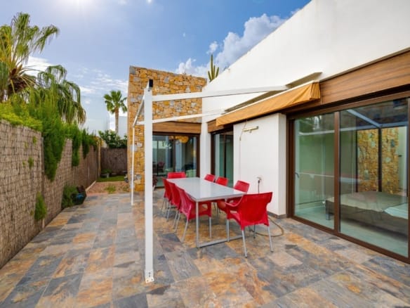 This stunning semi-detached villa is located in the popular residential area of Lomas de Cabo Roig on the Orihuela Costa and offers modern Mediterranean living in a quiet yet well-connected location.