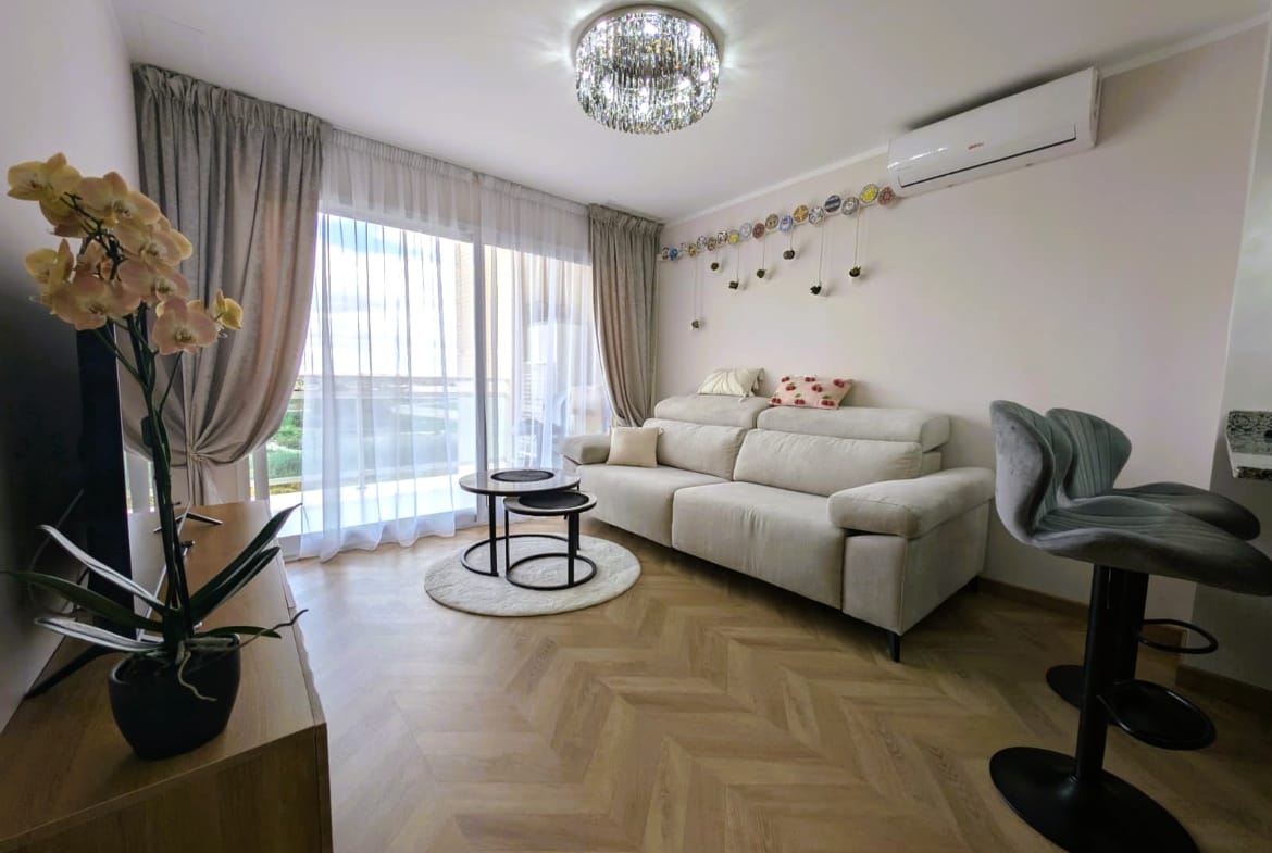 This beautifully renovated apartment, finished to high-quality standards, is located on the third floor of the sought-after Sun Beach complex, a development specifically designed for tourist accommodation. The property has not been lived in since the renovation, offering a completely fresh and unused interior with a refined, modern design.