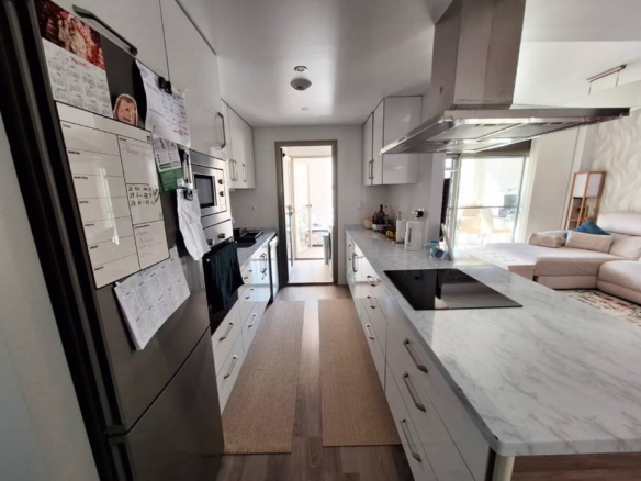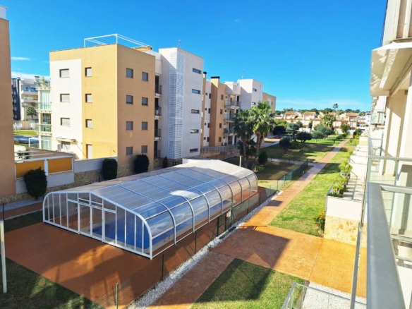 Beautiful high-quality south-facing apartment for sale in the sought-after area of Los Dolses, near Villamartin, on the stunning Costa Blanca. This bright and spacious property offers 2 bedrooms and 2 bathrooms (one en-suite), a very generous open-plan living and dining area, a fully equipped open kitchen, separate laundry room, and a fantastic 25m² terrace with glass curtains — perfect for enjoying the sun all year round. The apartment is sold mostly furnished and comes equipped with air conditioning and white goods, making it ready to move into. Included in the price is a private underground parking space and a spacious storage room, with lift access directly from the garage for extra convenience.